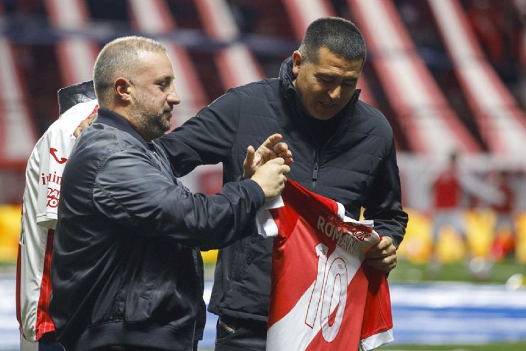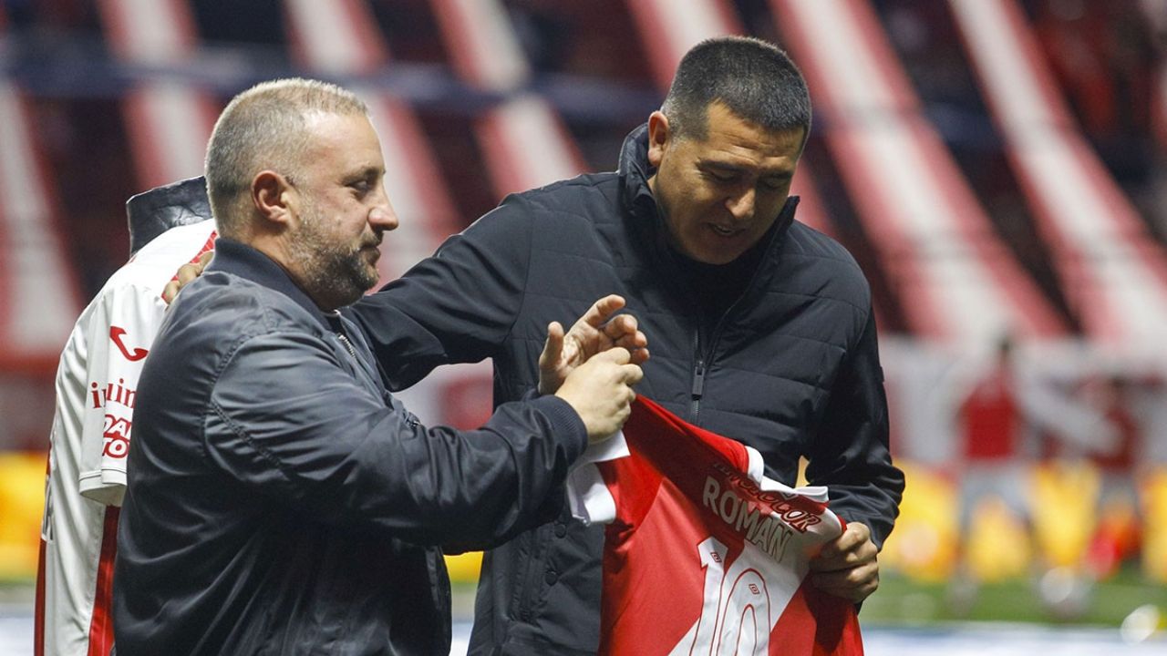 Malaspina, presidente del Bicho que no pega una cada vez que habla, con Juan Román Riquelme