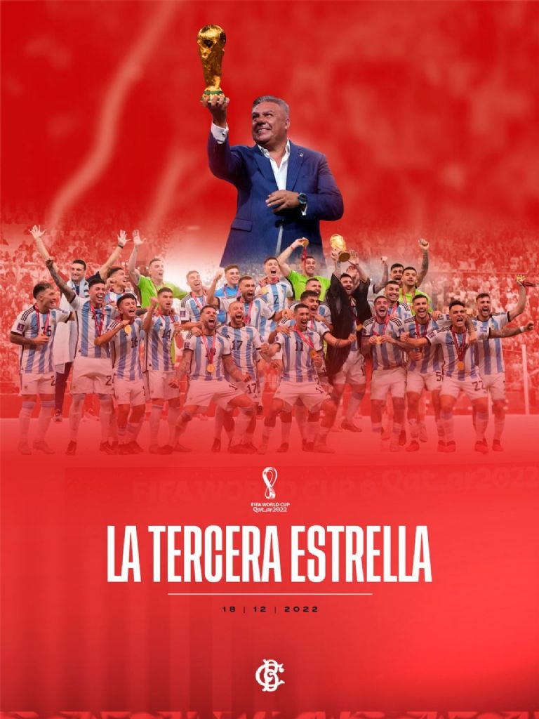 “Un 18 de diciembre inolvidable para toda la República Argentina. Una Selección que nos hizo emocionar y logró la tan deseada Copa del Mundo en Qatar. La tercera estrella siempre va a quedar guardada en nuestros corazones”, detalla el mensaje publicado por el club.
