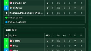 Canadá encabeza el Grupo B con un escenario incierto: su segundo rival saldrá del cruce entre Italia, Irlanda del Norte, Gales o Bosnia y Herzegovina; completan Qatar y Suiza; es decir. Impresionante "sorteo" para el país del presidente de Concacaf, el empresario canadiense Victor Montagliani.