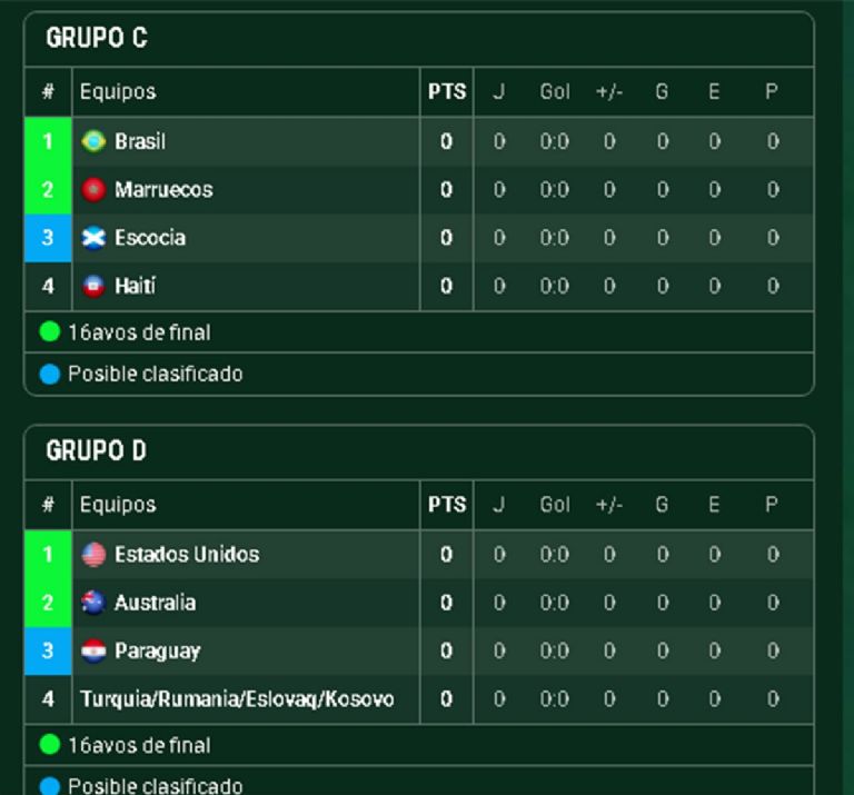 Brasil lidera el Grupo C junto a Marruecos, Haití y Escocia, en una zona sin definiciones pendientes desde la zona del repechaje. Salvo Marruecos, que está en ascenso, el resto son rivales accesibles para los brasileños.