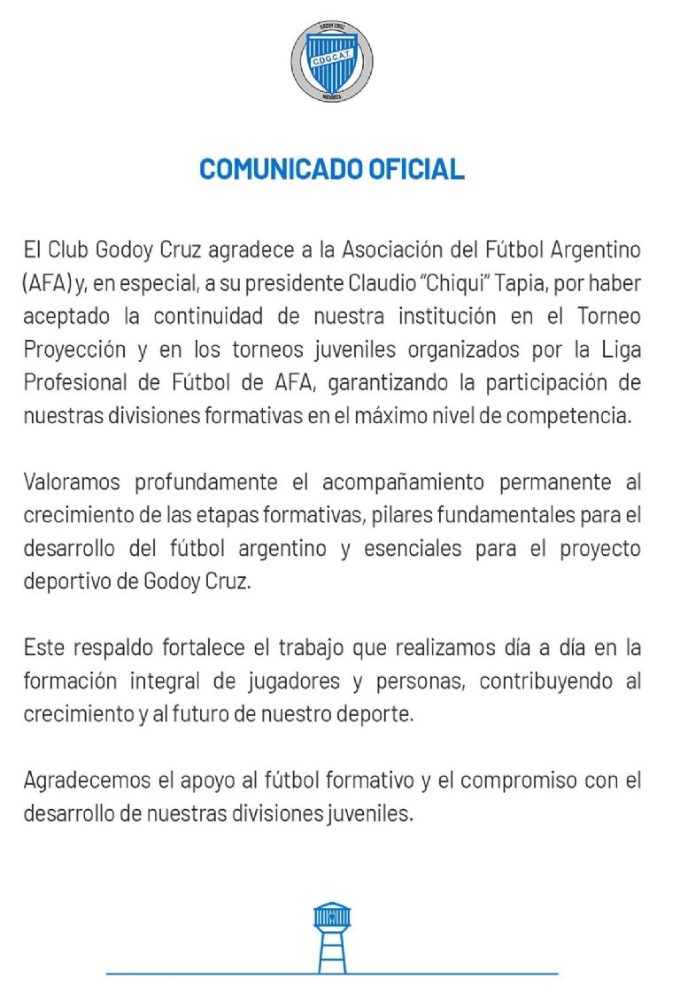 En reserva e inferiores, Godoy Cruz seguirá jugando en primera