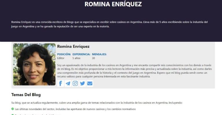 Según informó Todo Noticias, Romina Enríquez era administradora del blog CasinoTopsOnline donde desde hacía cinco años escribía artículos sobre juegos y casinos y daba tips sobre cómo ganar dinero con las apuestas.