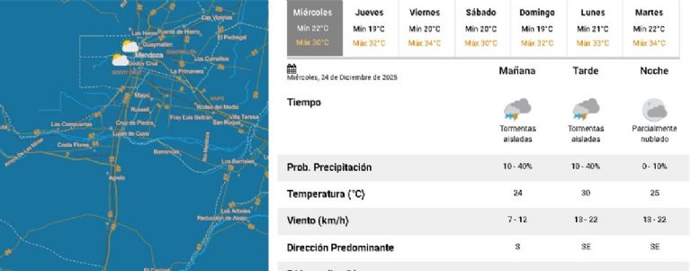 Mendoza se prepara para vivir una de las festividades más esperadas del año, la Nochebuena, con un clima que, si bien se mantiene fiel al verano cuyano, dará un respiro respecto a las jornadas de calor extremo de los últimos días.