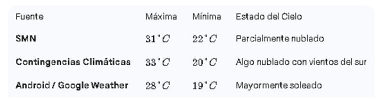 La temperatura máxima se ubicará en torno a los 30°C o 31°C, mientras que la mínima registró unos 21°C durante la madrugada.