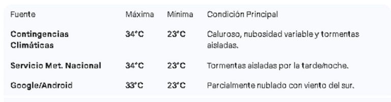 - Un descenso marcado de la temperatura (máxima de 31°C a 33°C según la fuente).