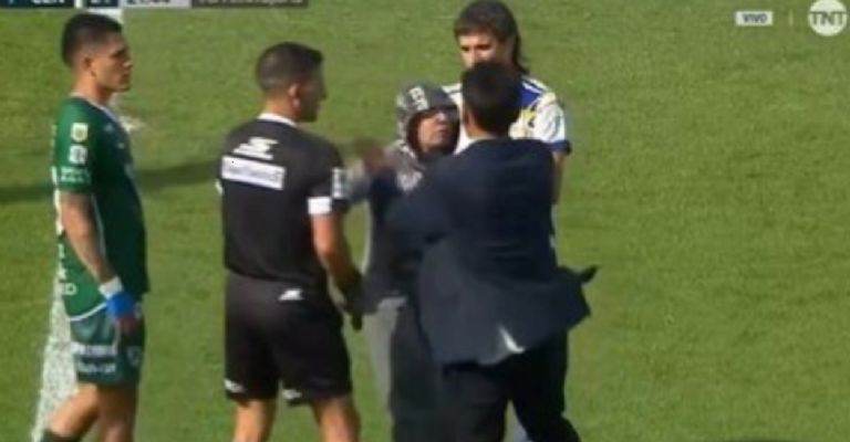 Un hincha de Sarmiento se metió a la cancha y agredió al árbitro Andrés Merlos