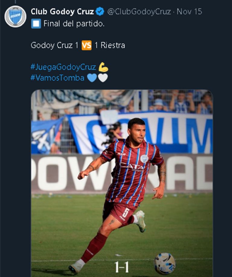 Última publicación de Godoy Cruz en sus redes... aquí no ha pasado nada.