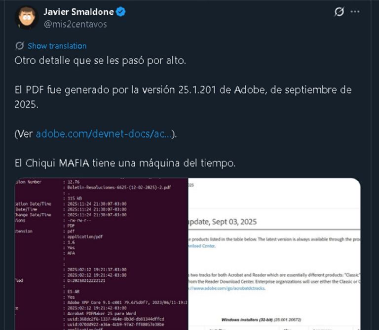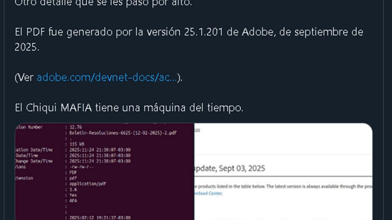 2) Cuando saltó la metida de pata en las redes, modificaron la metadata del PDF, para que pareciera editado el 12 de febrero, y volvieron a publicarlo.