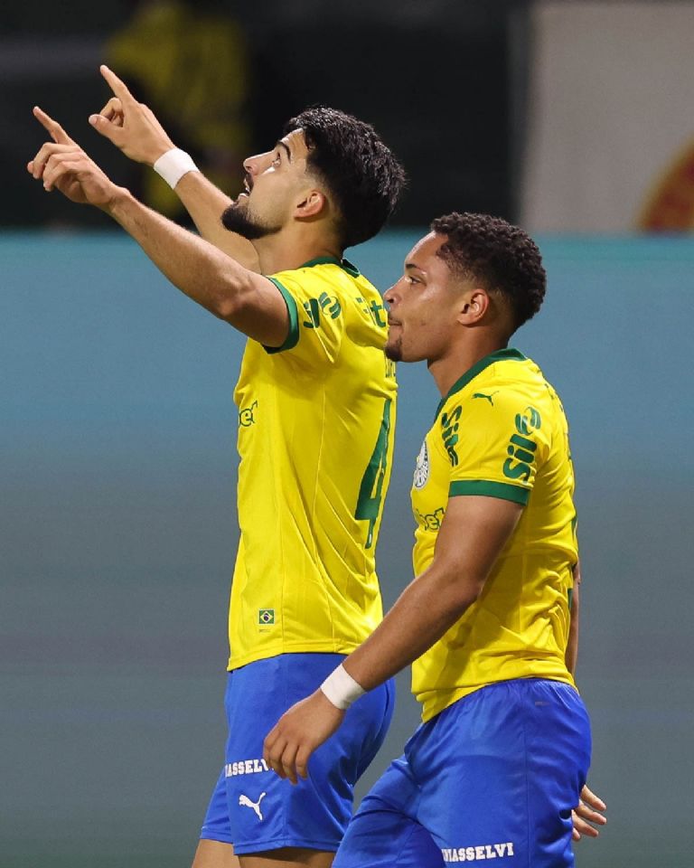 El Flaco López con la suplente de Palmeiras, muy parecida a la de Brasil.