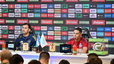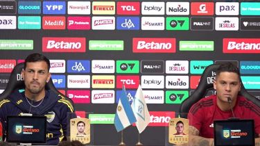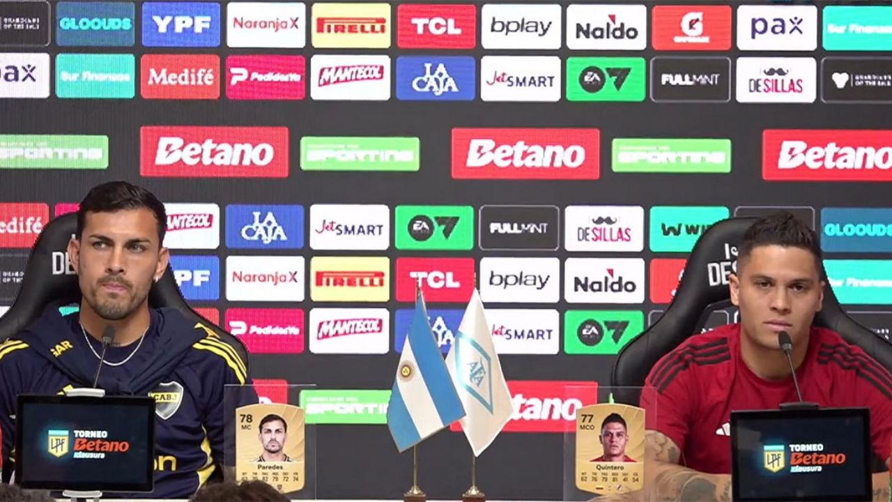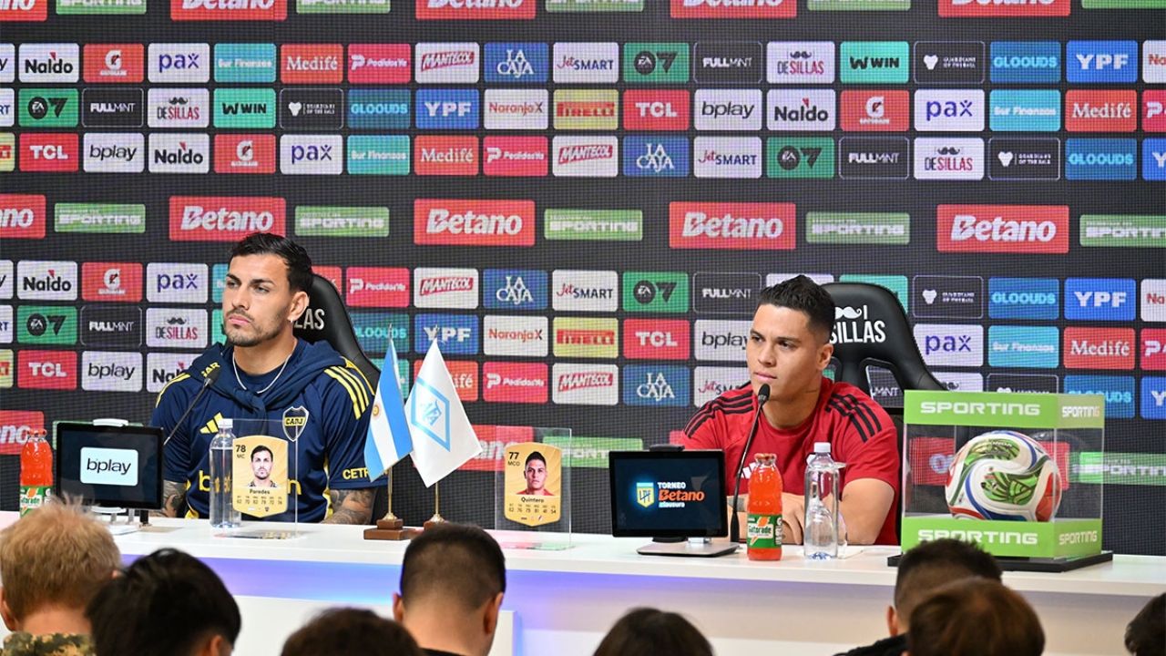 Leandro Paredes y Juanfer Quintero en la conferencia previa al Superclásico