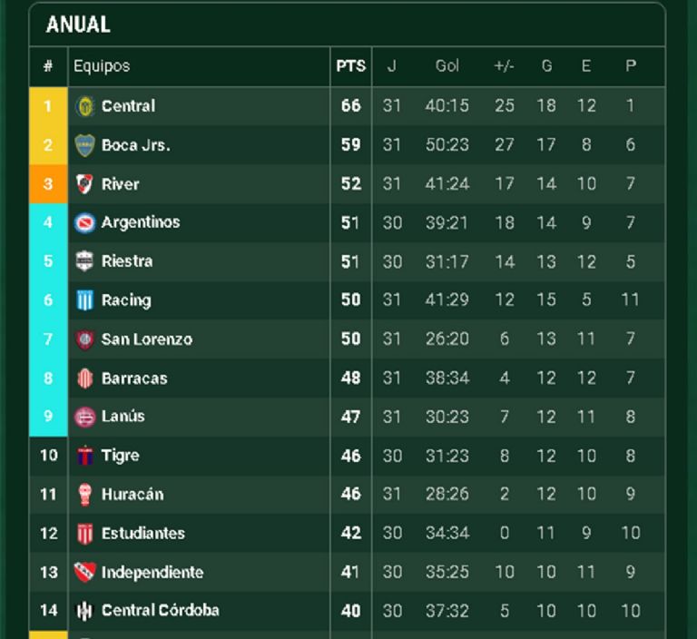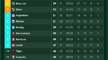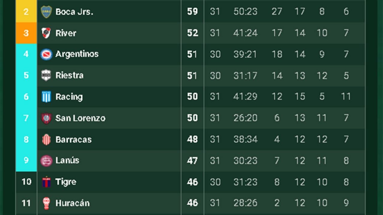 Pero podría ser superado por Argentinos Juniors y Deportivo Riestra si ganan este lunes.