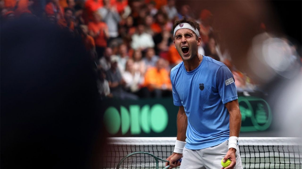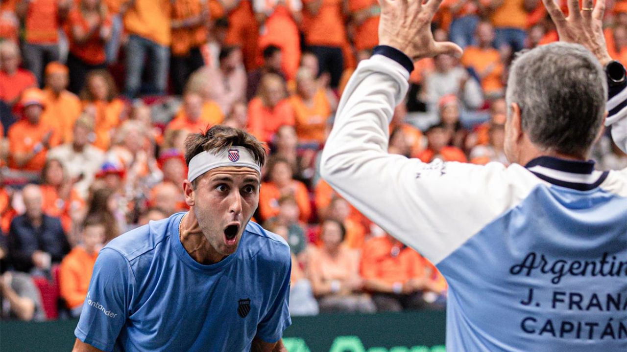 Cerúndolo se convirtió en la gran figura de la delegación argentina en la serie de Copa Davis ante Países Bajos después de sellar el segundo punto de la llave, que dejó al equipo conducido por Javier Frana con ventaja de 2-0 y al borde de la clasificación a la Fase Final de Bolonia.