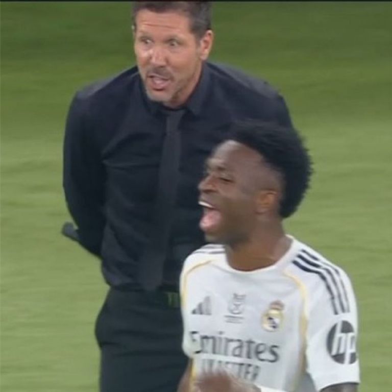 El director técnico del Atlético de Madrid, Diego Cholo Simeone, y el extremo brasileño del Real Madrid Vinicius Juniors protagonizaron varios tensos cruces durante el encuentro del jueves por las semifinales de la Supercopa de España que terminó con victoria del Merengue por 2 a 1.
