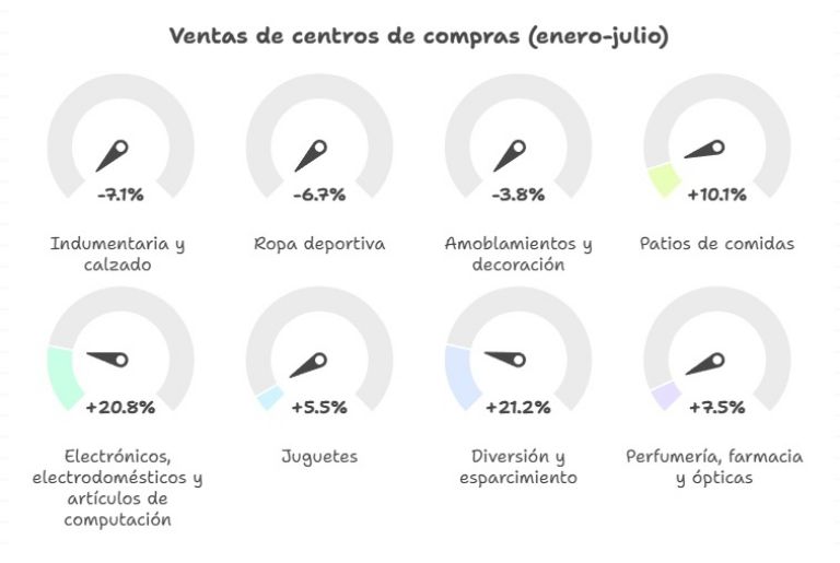El consumo en Mendoza muestra un panorama mixto. Según datos oficiales, las ventas en centros comerciales crecieron 4,7% en los primeros siete meses del año, impulsadas por rubros como electrónica, gastronomía y entretenimiento.