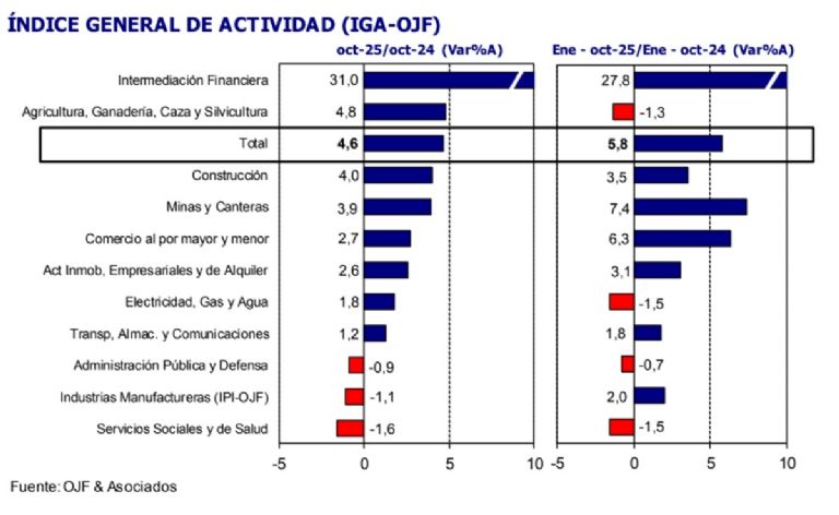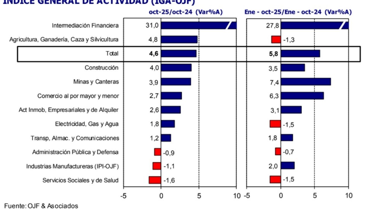 El desempeño de sectores como la intermediación financiera, el agro y la actividad minera explicó gran parte de la mejora registrada en el décimo mes del año.