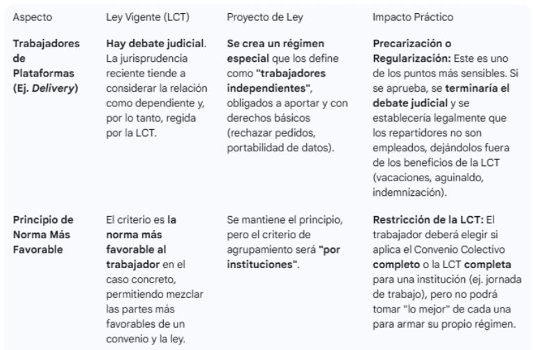 - Redefinición de alcances: se aclara que la LCT no será aplicable a dependientes de la Administración Pública, contrataciones del Código Civil y Comercial, y, notablemente, a trabajadores independientes y de plataformas digitales (como delivery), separándolos del régimen tradicional.