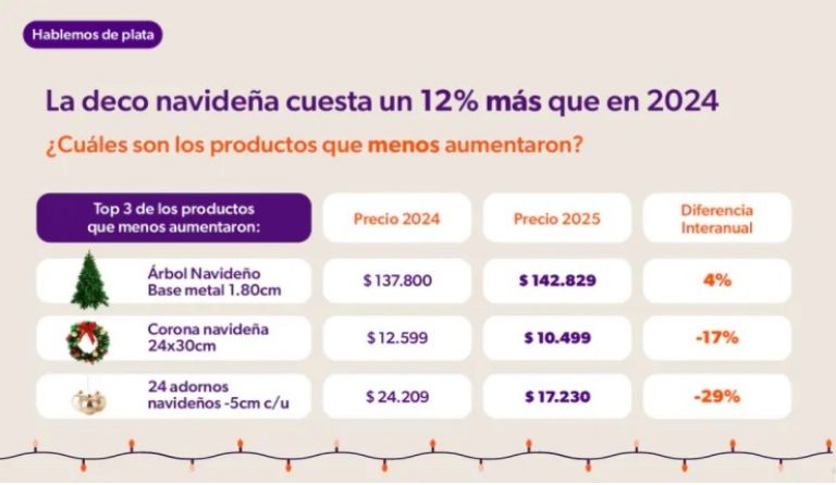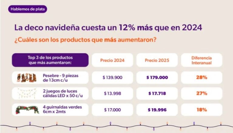 El reporte evidenció que la decoración navideña registra un aumento interanual del 12%, en tanto que el incremento en la canasta alcanza el 27%, destacando que “se tratan de variaciones acotadas, con fuertes diferencias según el tipo de producto y su origen”.
