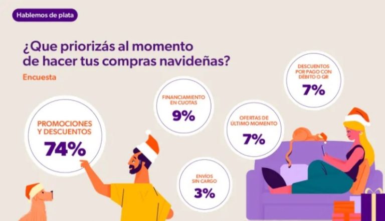 En relación a los hábitos de consumo predominantes en este escenario, el informe arrojó que el 74% de los consultados prioriza promociones y descuentos al realizar sus compras navideñas, seguido por quienes buscan financiamiento en cuotas (9%) y quienes aprovechan beneficios por pago con débito o QR (7%).