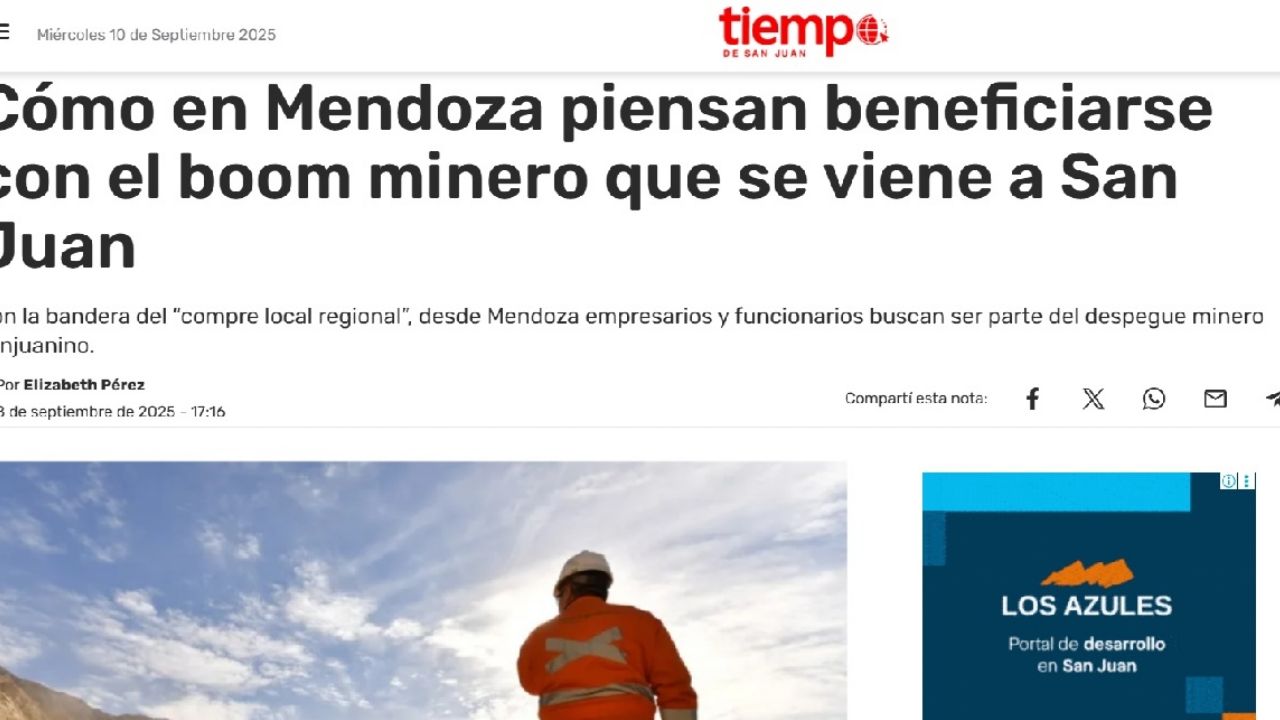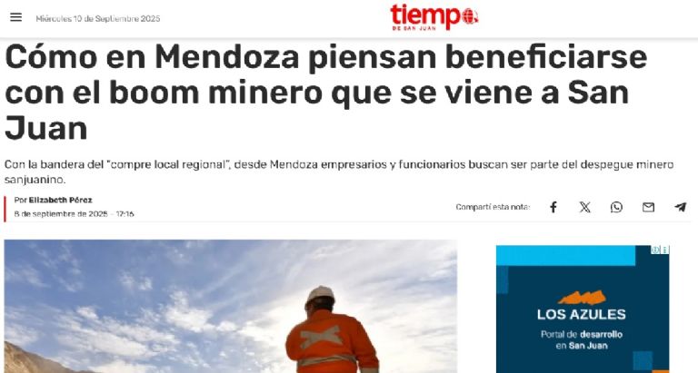 Hace unos días, el mismo medio, con dato del ministerio de Minería, publicó de dónde son los empleados y proveedores que toman las mineras de San Juan. El 52% de los ocupados por Filo del Sol, el 52% son de San Juan, el 35% de otros lugares de Argentina y el 13% de Chile. Mientras que en Josemaría, el 75% son de San Juan. Qué interesante que el ministerio de Minería tenga la información y la difunda con la prensa. Deberían tomar nota los funcionarios y periodistas que hablan de la institucionalidad de Mendoza.