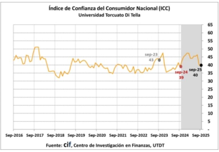 El Índice de Confianza del Consumidor (ICC) cayó en septiembre un 0,33% respecto de agosto, según el indicador que elabora la Universidad Di Tella.