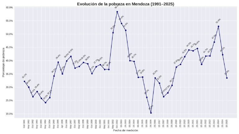 Devaluaciones, hiperinflación, recesión, alta desocupación, pandemia y economía estancada - entre otros factores-, hicieron que en el Gran Mendoza la tasa de pobreza nunca bajara del 20% en 34 años. A eso hay que sumarle la dirigencia nacional y provincial que tenemos. ¿Algo más?