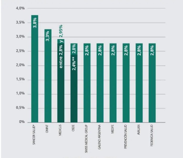 Los aumentos informados por cada empresa pueden variar y no coincidir con los efectivamente facturados o solicitados a los usuarios, en virtud de bonificaciones o descuentos comerciales aplicados por las compañías sobre el valor declarado ante la Superintendencia de Servicios de Salud.