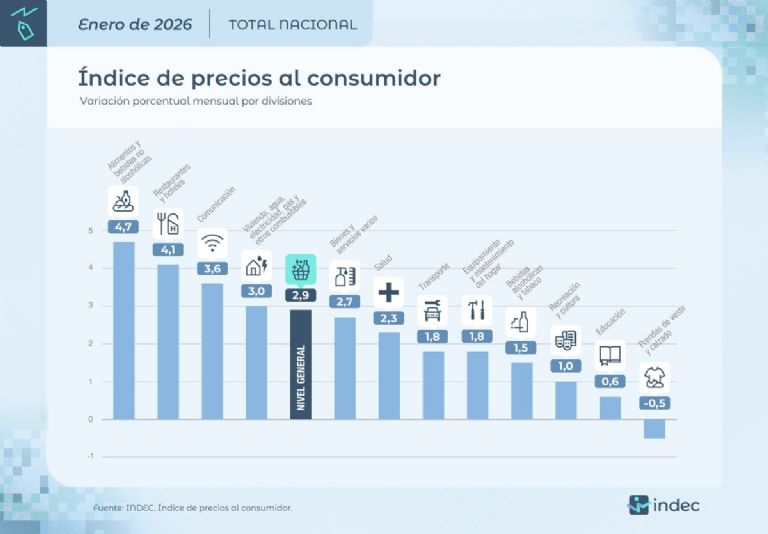 Tras la polémica salida del ex director del Indec, Marco Lavagna, se conoció el Ìndice de Precios al Consumidor (IPC) medido sin el cambio de canasta de productos que pretendía el ex funcionario. El Indec informó que la inflación de enero fue del 2,9%, una décima por encima del indicador de diciembre del 2025 fue 2,8%.