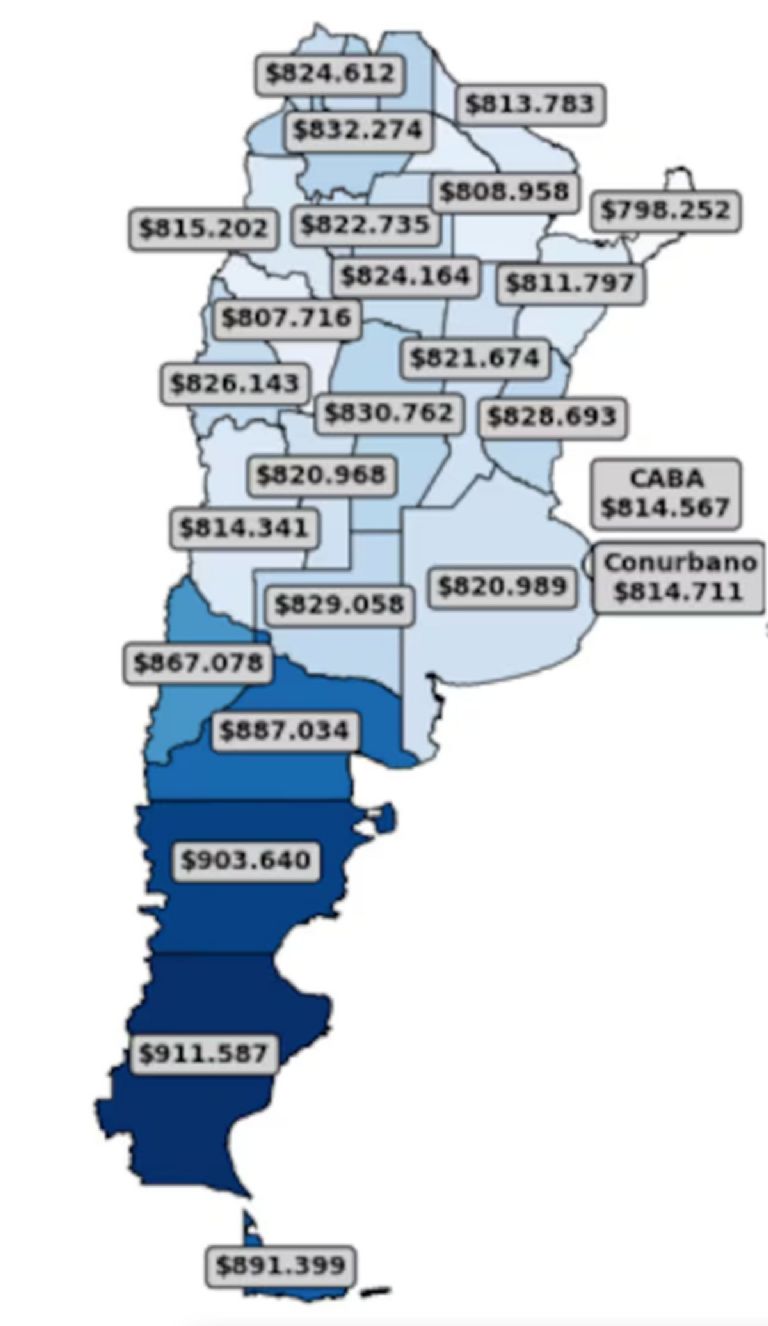 En concreto, hay diferencias de hasta $113.335 (14,2%) entre Santa Cruz -donde está el changuito más caro, que supera los $911.000- y Misiones, la provincia donde es más accesible ya que el costo fue de $798.252.