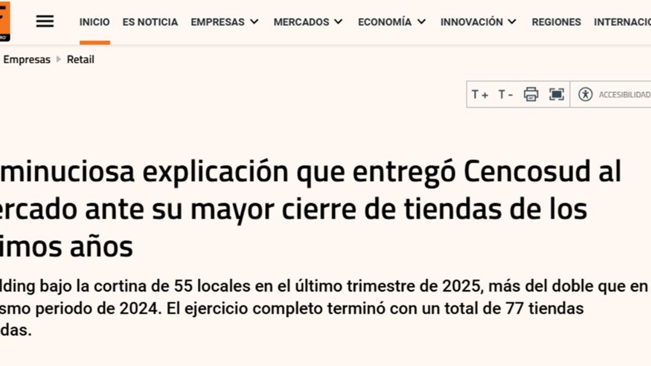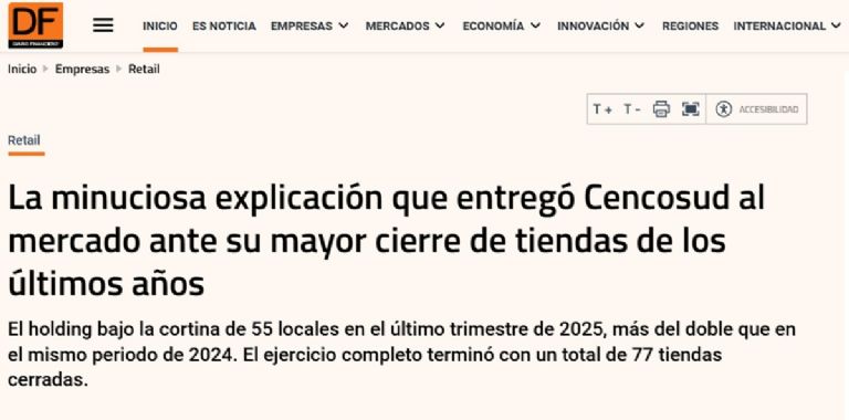 A pesar de haber cerrado 2025 con márgenes positivos, el grupo chileno Cencosud profundizó en el último trimestre un proceso de reorganización comercial en los distintos países donde opera, incluida la Argentina, donde cerró varias de sus sucursales y se sumó a una tendencia que impacta en otras cadenas.