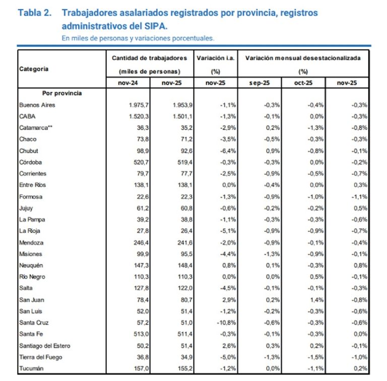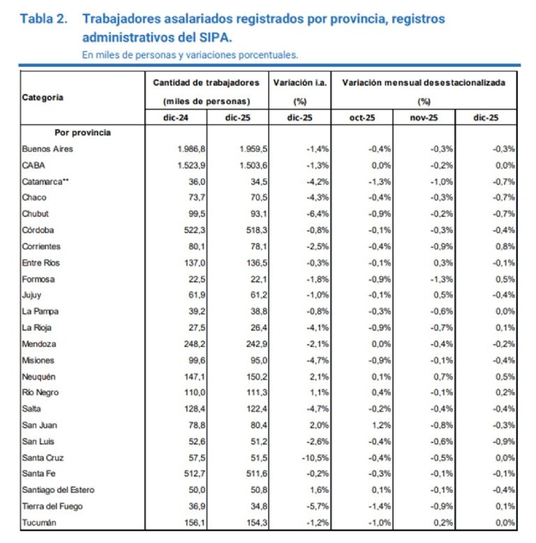 Así lo indican los datos del Sistema Integrado Previsional Argentino (SIPA). Son los números correspondientes a diciembre que se conocieron ayer.