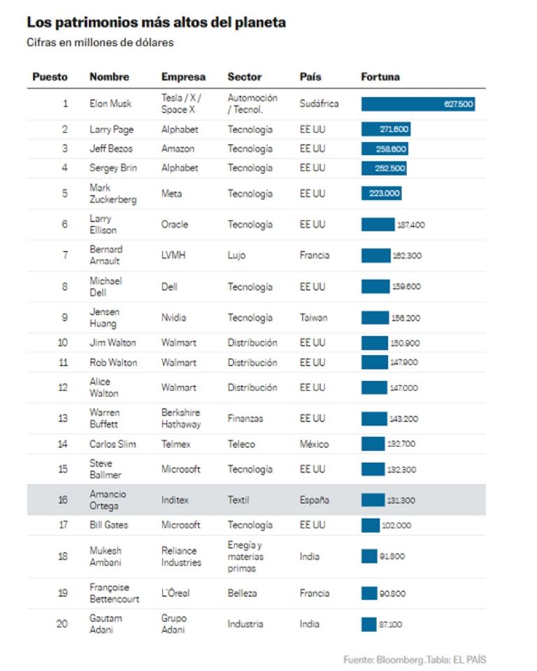 De acuerdo con los últimos datos de Oxfam, las 12 personas más ricas del mundo acumulan en conjunto un patrimonio superior al de más de 4.000 millones de personas. El crecimiento de las fortunas de los milmillonarios no se debe en exclusiva al hecho de que los impuestos no hagan mella en su patrimonio. Según Francisco Ferreira, responsable de estudios sobre desigualdad en la London School of Economics, también han ganado mucho por el debilitamiento de las reglas que protegen la libre competencia. Según él, la industria del acero, o incluso la del petróleo, tenían que enfrentar más competencia que las grandes tecnológicas de hoy, “que pueden trabajar con márgenes mucho mayores y generar unos beneficios extraordinarios”.