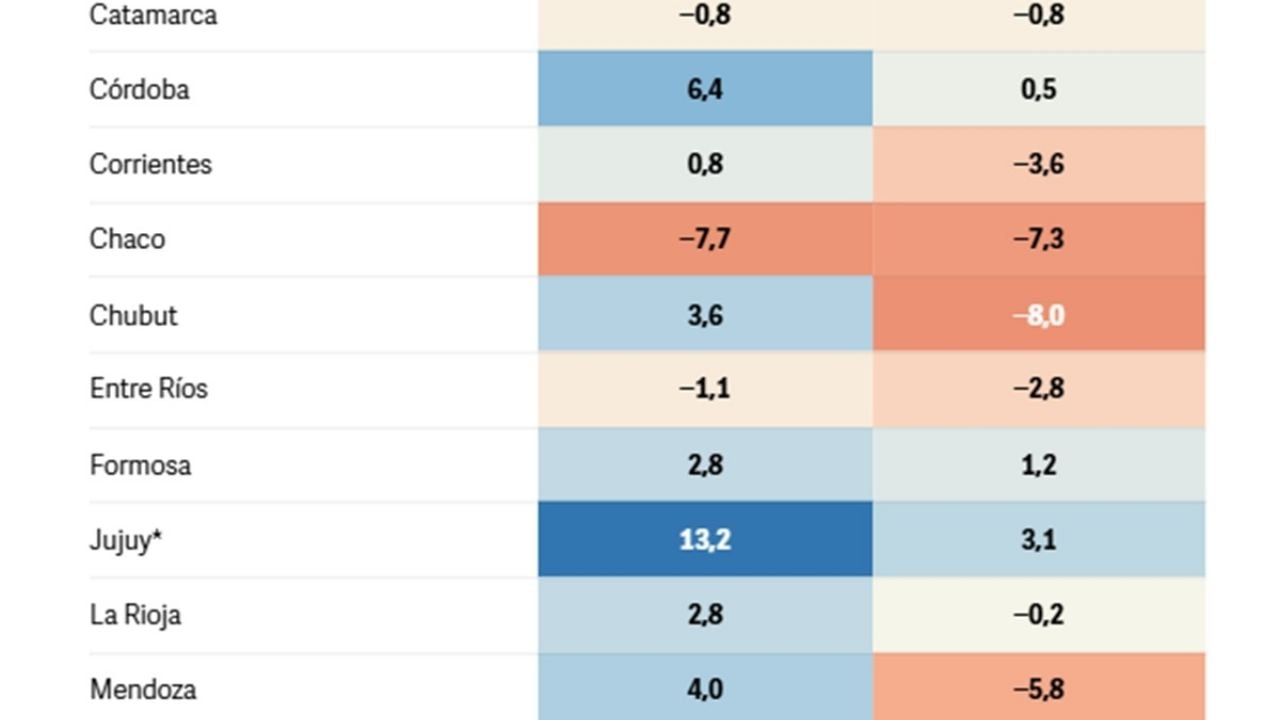 Las que pudieron manterse con superávit fueron Córdoba, Formosa, Jujuy, Neuquén, San Juan, Santiago del Estero y Tucumán. Incluso ellas también tuvieron un deterioro: en todos los casos el excedente fiscal con el que cerraron 2025 fue más bajo que el que tenían un año antes.