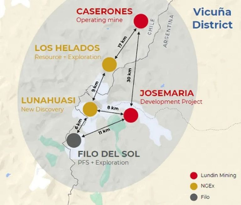 Detrás de Vicuña están la canadiense Lundin Mining y la australiana BHP —que en Chile opera La Escondida, el mayor yacimiento de cobre del mundo—. La empresa prevé desembolsar US$7100 millones en los próximos tres años para construir y poner en marcha una mina de cobre a más de 4200 metros de altura en San Juan. Si el plan avanza según lo previsto, la inversión total ascendería a US$18.000 millones en la próxima década, lo que la convertiría en una de las cinco minas más grandes del mundo en cobre, oro y plata.