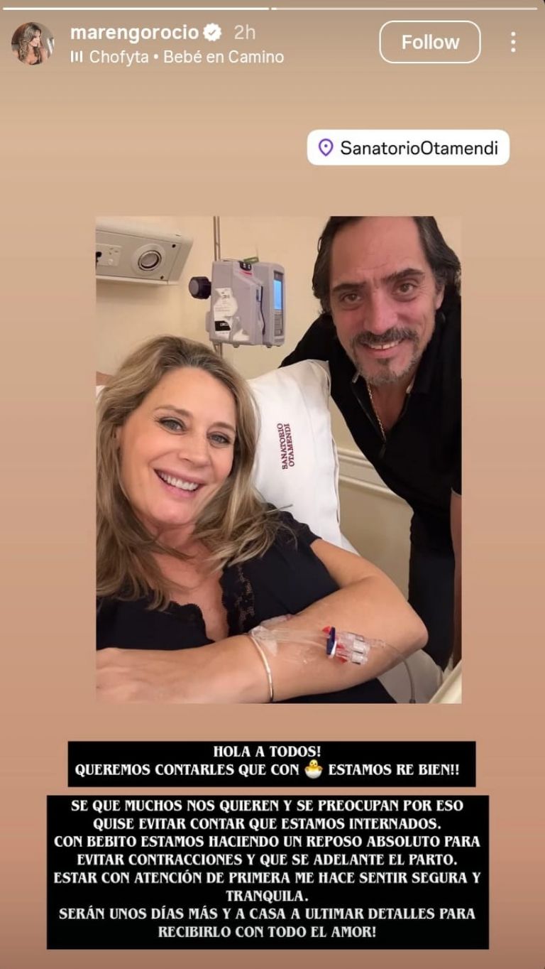 A su vez, Rocío Marengo publicó un breve comunicado en sus redes sociales para llevar tranquilidad a sus seguidores. "Se que muchos nos quieren y se preocupan por eso quise evitar contar que estamos internados. Con el bebito estamos haciendo reposo absoluto para evitar contracciones y que se adelante el parto", contó junto a una fotografía con su pareja.