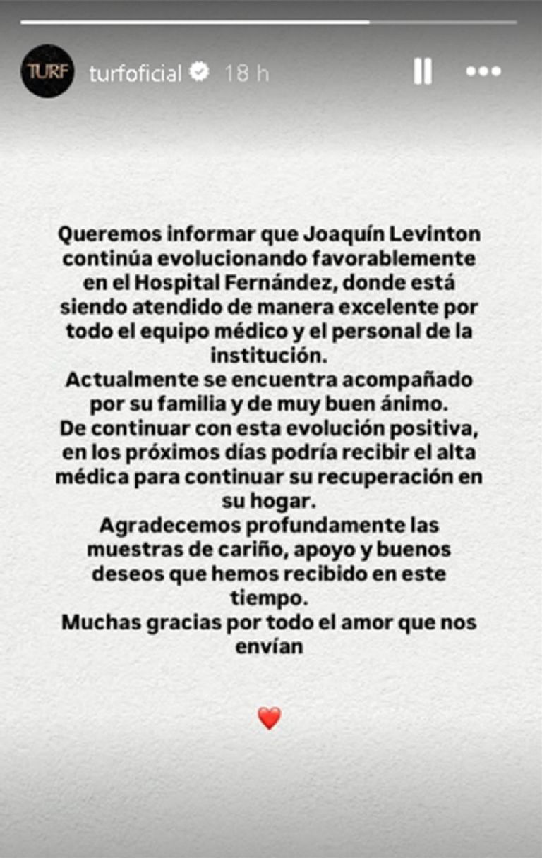 Joaquín Levinton evoluciona favorablemente luego del infarto
