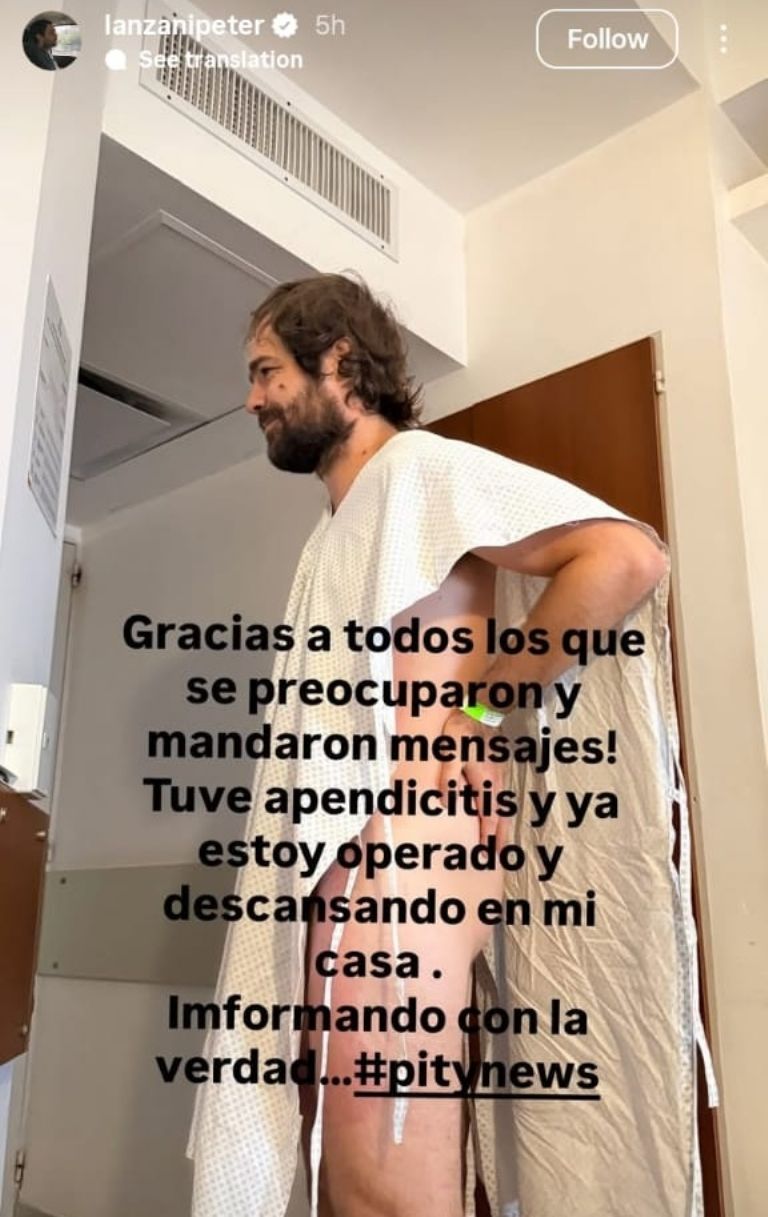 “Gracias a todos los que se preocuparon y mandaron mensajes! Tuve apendicitis y ya estoy operado y descansando en mi casa. Informando con la verdad… #pitynews”, escribió en la imagen donde aparece con su bata de hospital.