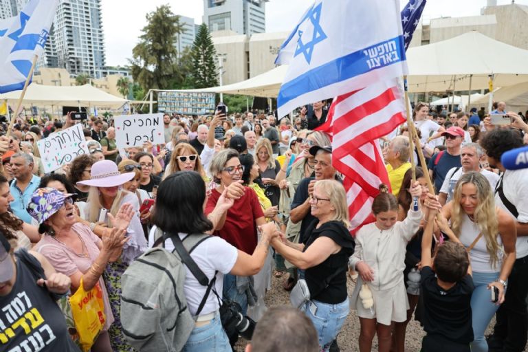 Llantos y abrazos en la Plaza de los Rehenes de Tel Aviv