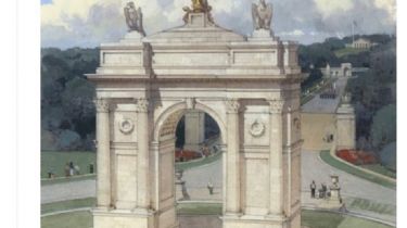 Regresó a casa con el deseo de tener su propio desfile militar, y en junio, cuando tropas y tanques recorrieron Washington, su deseo se hizo realidad. Pero faltó el Arco del Triunfo. Por eso ahora, el presidente proyecta construir uno al otro lado del río frente al Monumento a Lincoln.