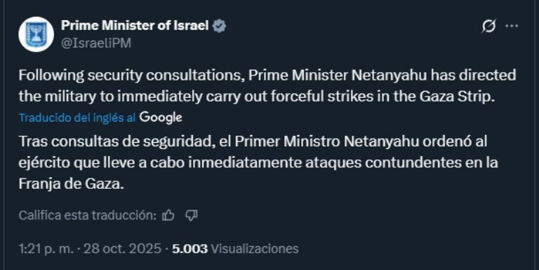 El primer ministro israelí, Benjamín Netanyahu, calificó el asunto como una “violación del alto el fuego” y celebró una reunión de emergencia el martes por la tarde para considerar una posible respuesta, anunciada finalmente en la noche de Jerusalén.