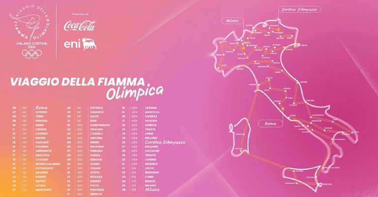 La llama atravesará lugares emblemáticos como el Coliseo, la Fuente de Trevi, la Catedral de Milán y el Gran Canal de Venecia.