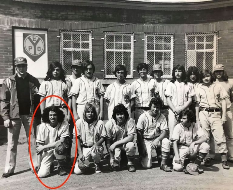 William Fyfe abajo a la izquierda en el Park Extension Youth Organization, un equipo de béisbol, en 1970.