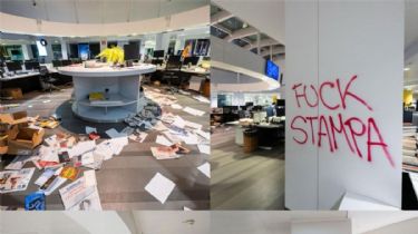 Una turba de manifestantes en favor de la causa palestina asaltó y destrozó el edificio de la redacción del periódico La Stampa, en la ciudad de Turín, al norte de Italia.