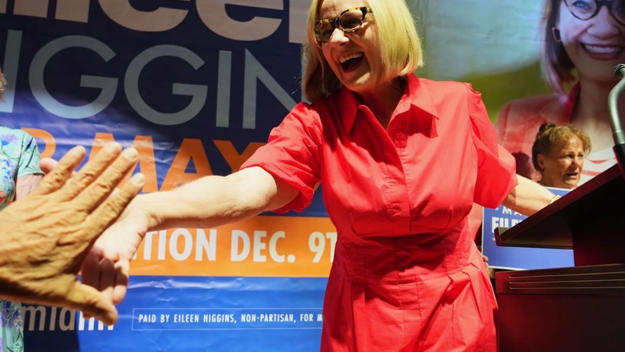 Higgins, de 61 años y ex comisionada del condado, derrotó en la segunda vuelta electoral con el 59% de los votos al gerente municipal Emilio González, que recibió un 41%. El 4 de noviembre, la primera vuelta, Higgins se había impuesto con el 35% de los votos frente al 19% de González.