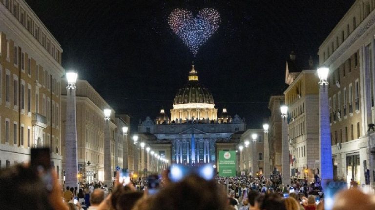 El Vaticano como nunca nadie lo había visto: con la Plaza de San Pedro convertida en un estadio para un recital a cielo abierto, con 300.000 personas bailando al ritmo de Pharrell Williams a la sombra de las columnatas de Bernini y un show impresionante de 3500 drones que iluminó el cielo sobre la Basílica que es el centro del catolicismo.