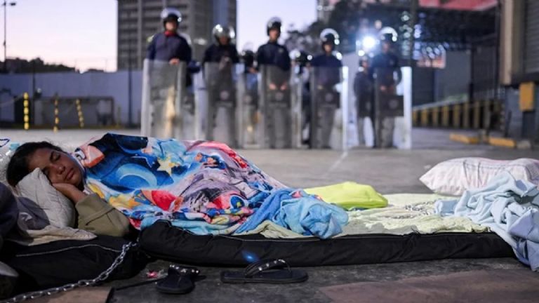 La organización no gubernamental compartió en la red social X imágenes que muestran a los familiares sobre colchonetas alineadas, cerca de quienes había más de una decena de policías y escudos antimotines.