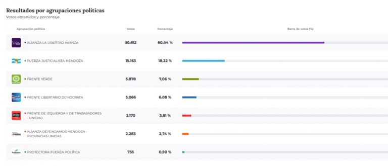 Mientras tanto, en la Ciudad de Mendoza la lista deLuis Petri cosechó el 57,93% de los votos. Ese dato también tiene una connotación especial si se tiene en cuenta que el intendente de Ciudad, Ulpiano Suarez, aspira a competir con Petri por la gobernación en el 2027.