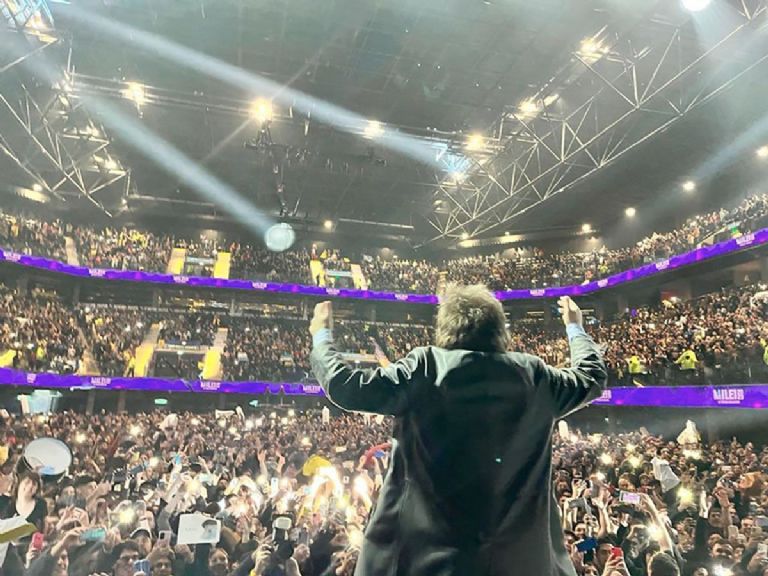 El presidente Javier Milei cantó hoy temas de rock nacional, cuestionó a los “kuka tira piedras” y brindó un fuerte respaldo a Israel como antesala a la presentación de su nuevo libro en el Movistar Arena.