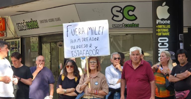 Cientos de seguidores se congregaron en la calle, armados con banderas violetas y coreando lemas a favor del mandatario. Simultáneamente, grupos opositores y jubilados se manifestaron con carteles que lo acusaban de "hambreador" y "vende patria," mencionando el escándalo del "3%" de Karina Milei.