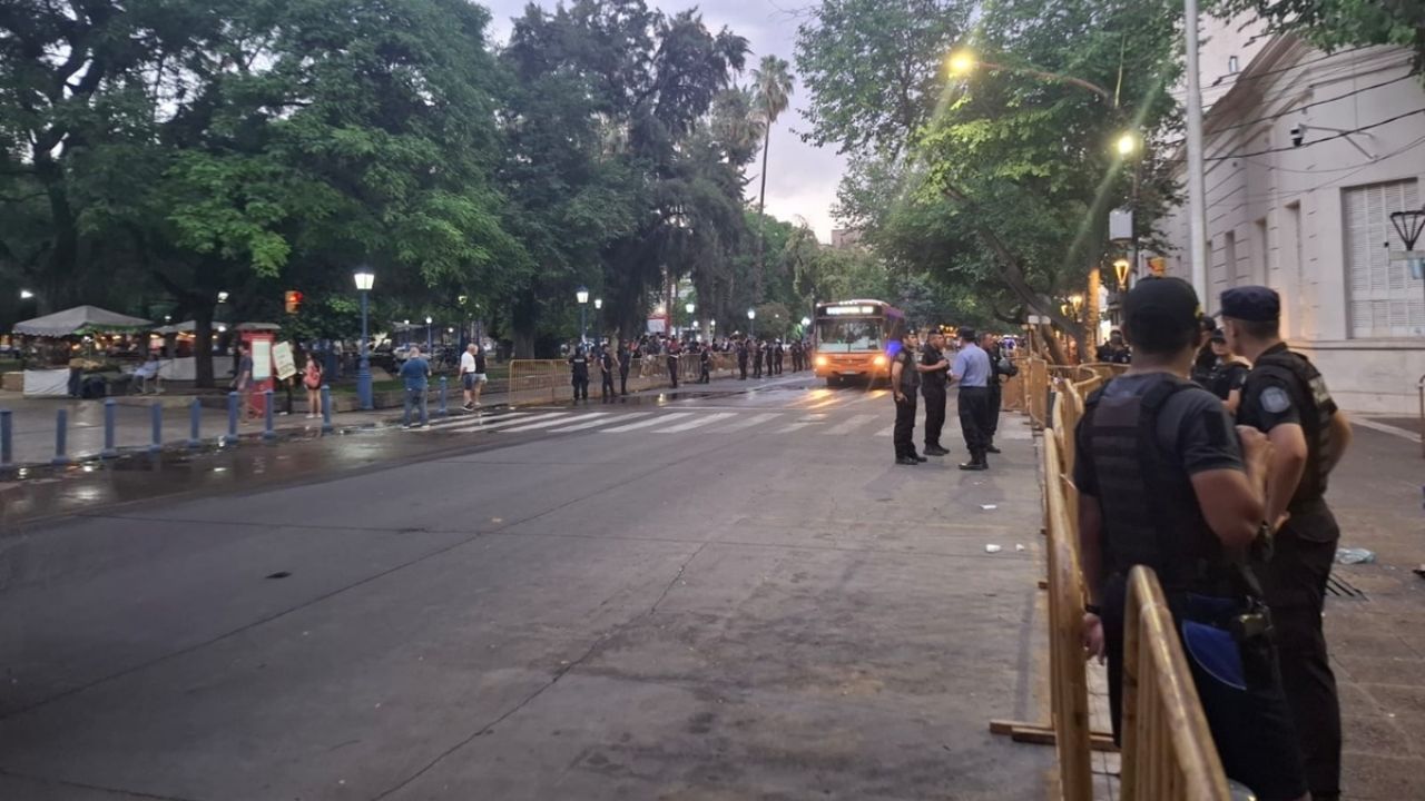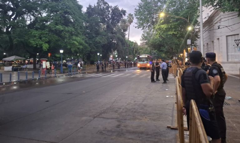 Los peatones no podían ingresar a la vereda de la Legislatura por Patricias Mendocinas y también la policía pedía que no estuvieran cerca del ingreso a la Casa de las Leyes por Peatonal Sarmiento.