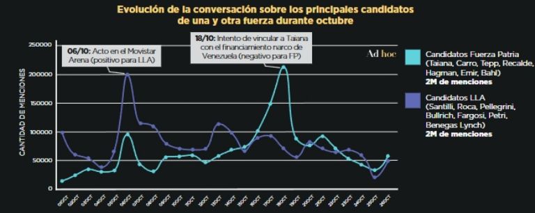 En tanto, se analizó que "las 2 millones de menciones a los principales candidatos de Fuerza Patria no fueron suficientes para superar las menciones a candidatos libertarios en distritos clave como CABA, Córdoba, Mendoza y Entre Ríos".